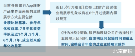 如今随着中国银行业协会《行为准则》的发布,理财产品过往业绩展示乱象或将在6个月过渡期内得以规范。
