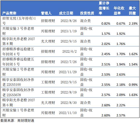 成立以来净值增长率排前十名的普通养老理财产品(截至11月22日)