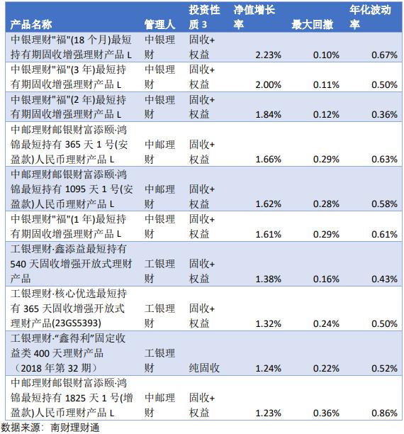 近6个月净值增长率排名前三的均是中银理财的相关产品,该三支产品的近6个月净值增长率如下表,年化收益率则分别为4.46%、4%、3.68%。