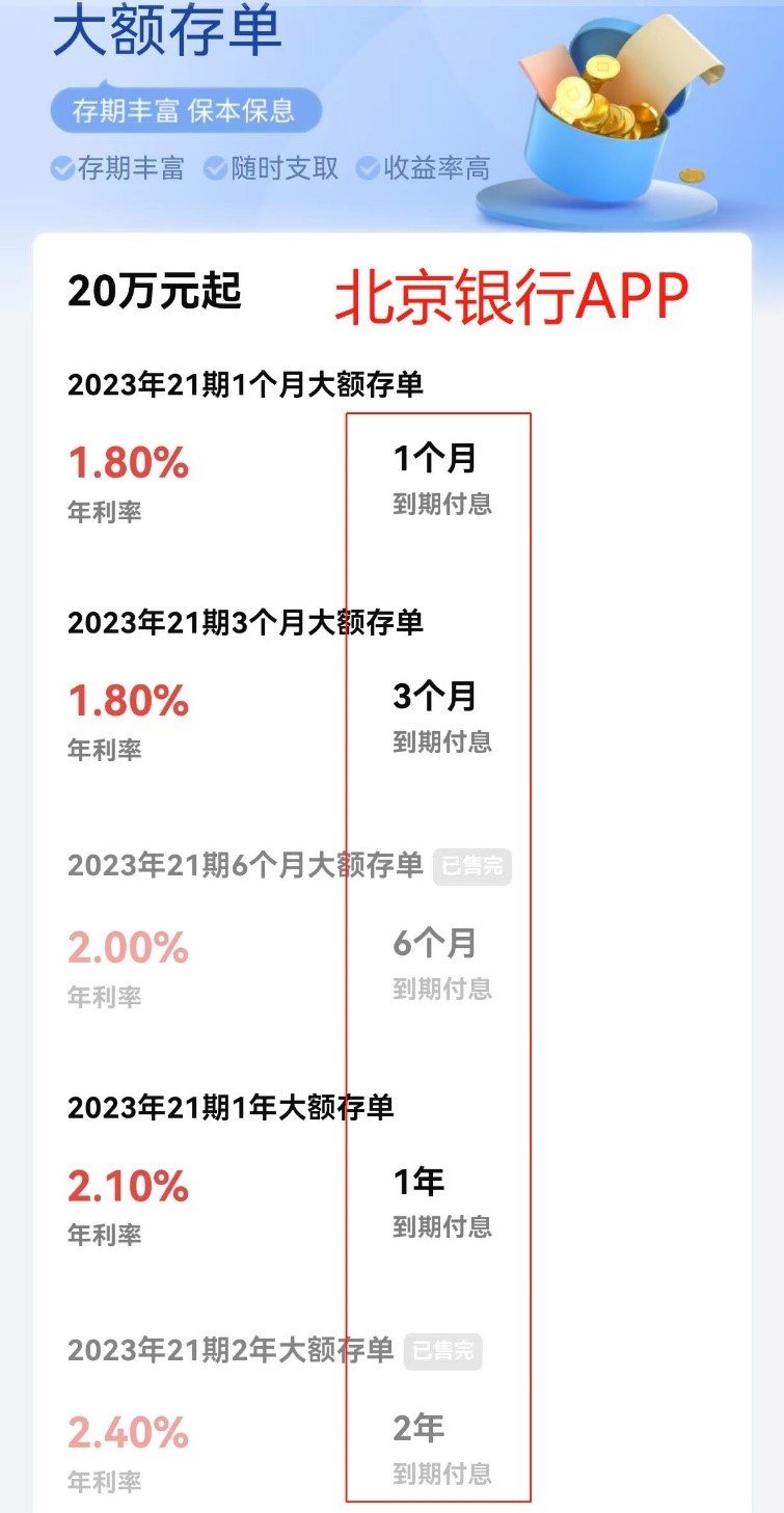 11月7日银行APP数据显示,招行不管是大额存单还是特色存款产品,都只有2年期及以下期限的品种了。平安银行、北京银行在售的大额存单也只有2年及以下期限品种。渤海银行在售大额存单只有1年及以下期限品种了。