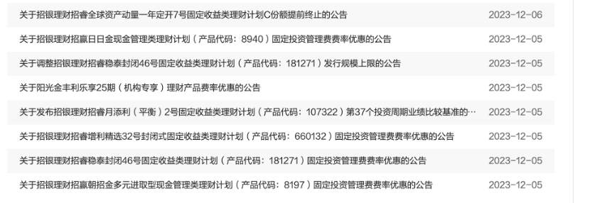招银理财费率优惠相关公告