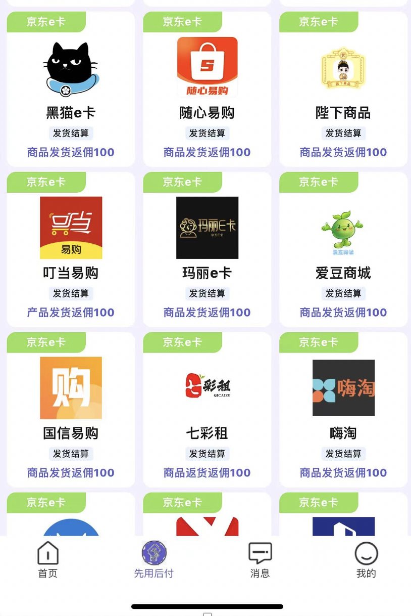 “先用后付”模式下,套现者需要承担高额的中间费用。以一家购物平台某款产品为例,该产品包含1700元京东E卡、某音箱产品、大量平台优惠券,“先用后付”的售价在2500元。发货后,需要在14天内付款。记者发现,上述平台优惠券在第三方平台供应商的打包售价为29元,某音箱产品供应商价格在54元。而在某二手交易平台,1700元京东E卡这类储值卡出售价格基本在1650元~1690元之间。