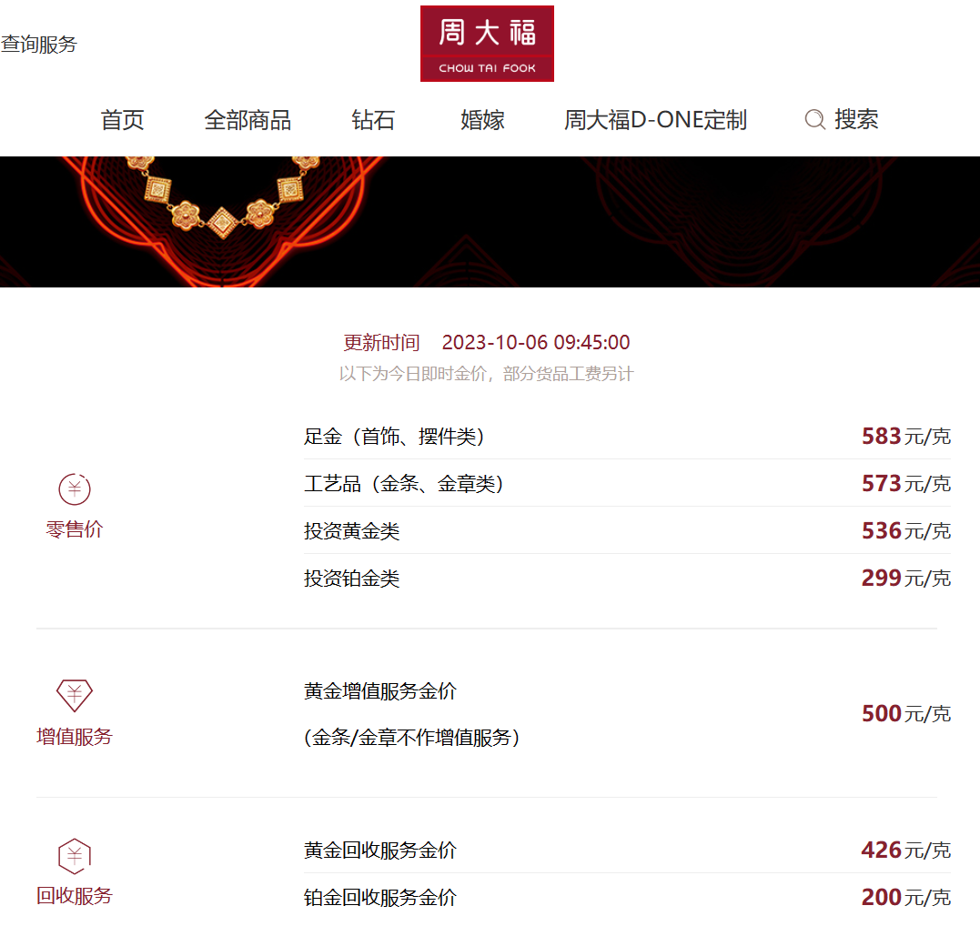 (周大福官网9月15日、10月6日金价对比)
