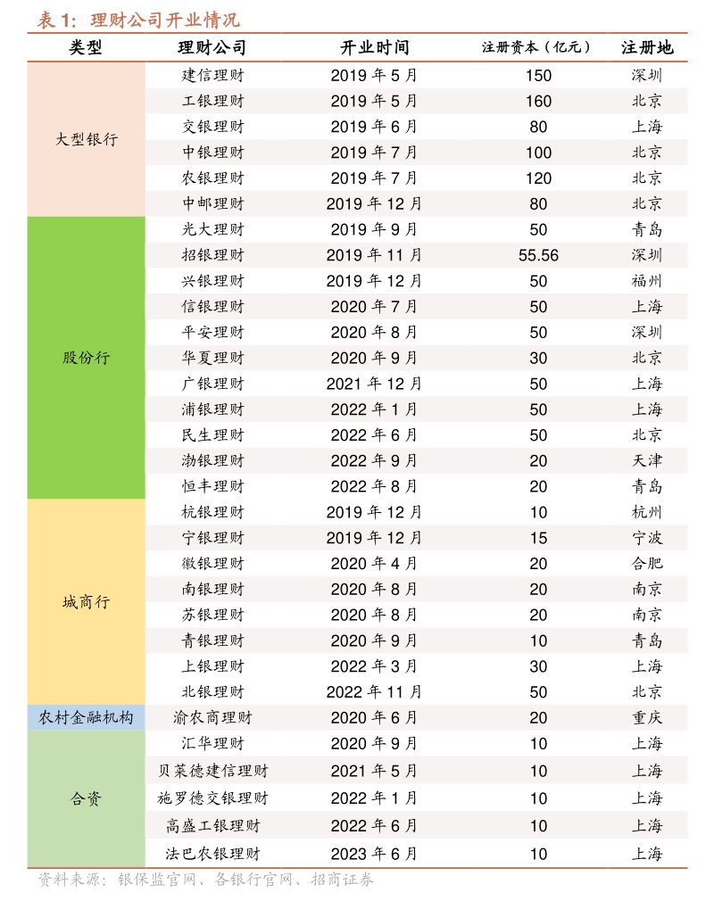 从注册资本看,国有大行旗下的理财公司注册资本在80亿元至160亿元区间,其他理财公司多在10亿元至50亿元区间。
