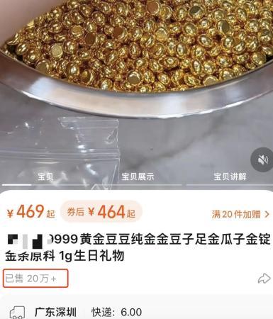 市场的火热也体现在商家端。深圳水贝一家黄金店主告诉记者,目前其线上店销量最好的是“金豆”类产品,近期月销量较去年接近翻倍。记者在该店铺注意到,其中一款1克重的金豆产品累计销量已达20万+。而5克重的金豆产品累计也销售超1万+。此外,该店所在的购物平台统计数据显示,该店有27%左右的客户属于“回头客”(即有多次购买行为)。