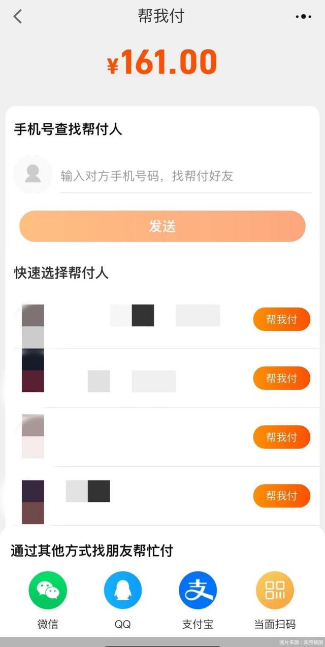 北京商报记者使用自有账号测试发现,在多个不同类别产品的付款页面,均未直接出现微信支付的选项。不过,在点击“帮我付”功能后,不仅可以通过手机号、淘宝好友快速选择帮付对象,也可以将链接分享给微信好友,该支付方式与“去微信找朋友帮我付”功能使用流程是一致的。