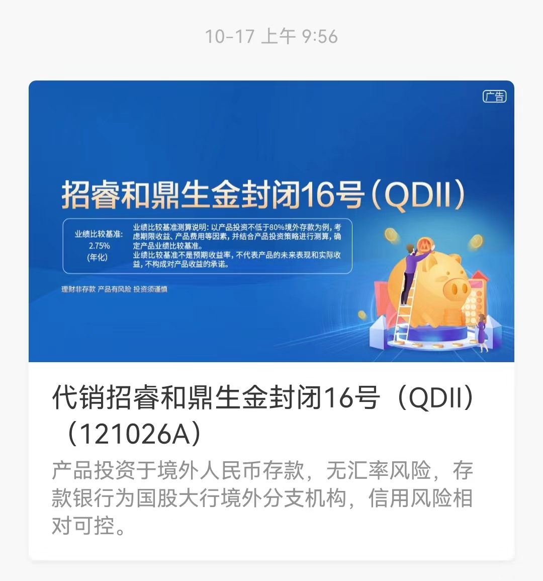 日前,招商银行在官网发布了一款别出心裁的理财产品——招银理财招睿和鼎生金封闭16号(QDII)固收类理财计划,引发广泛关注。
