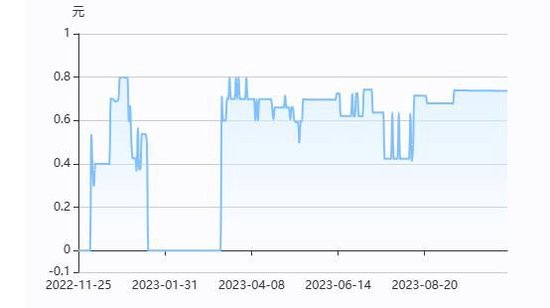 与产品较为平缓的七日年化收益走势比起来,该产品的万份收益走势呈现了更为明显的波动趋势,最高万份收益可至1.9596元,最低可至0元。无独有偶,成立近一年的亚军产品“稳享现金添利(惠享版)1号B”成立以来万份收益走势波动也较为明显。